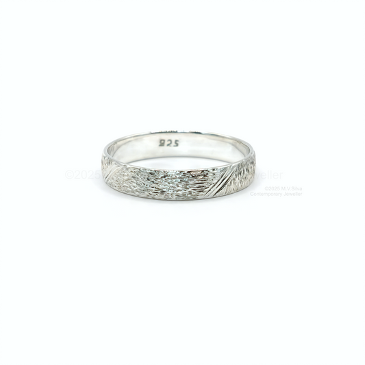"Tree Lines" Hand Engraved Bark Textured Wedding Ring